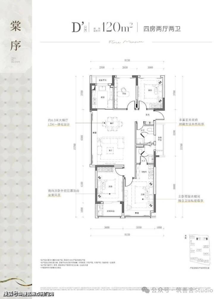 项目总建面约9万方,规划11幢12-16层纯高层,采用"南低北高"的错落布局,建筑限高50米,楼幢间距预计较为开阔,错落式布局,打造了两大主题园林空间。推出建面约99㎡与113㎡精致三居室,以及建面约108㎡、120㎡、128㎡、139㎡宽敞四居室,满足不同家庭需求。