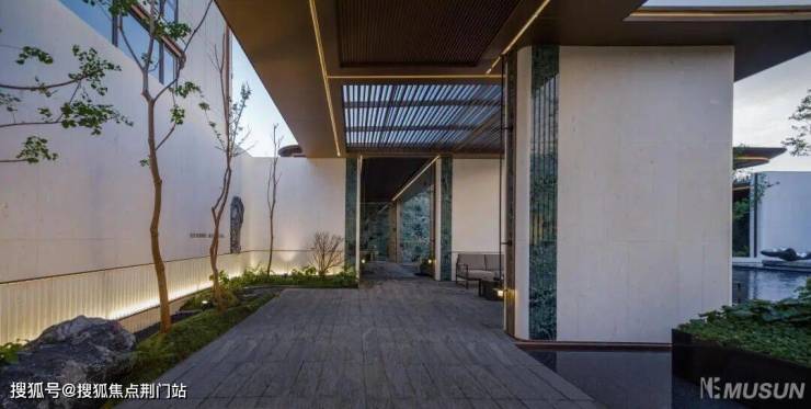 穿过归家大堂,入眼的便是大片的镜面摩登水院,涌泉叠水,高低错落、动静相宜。 景观 设计团队更是在水院里做了一个下沉式卡座,未来业主可以在这里闲坐观景,与三五好友可以畅聊天地。