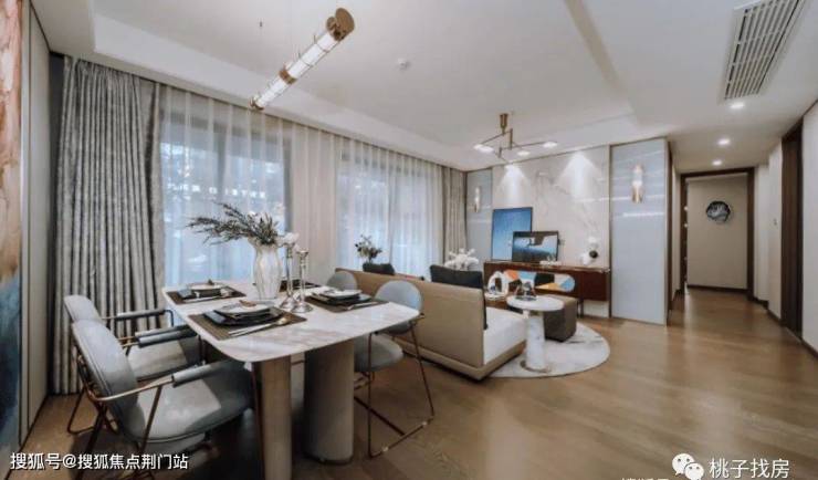 南向面宽做到了高达约9.7米。即便适逢寒秋、深冬,南侧的阳光依旧可以充分铺洒。此外,全明双卫、餐客厅一体,空间的阔敞感,一目了然。哪怕是客人到访,也会大为赞叹主人大家风度。