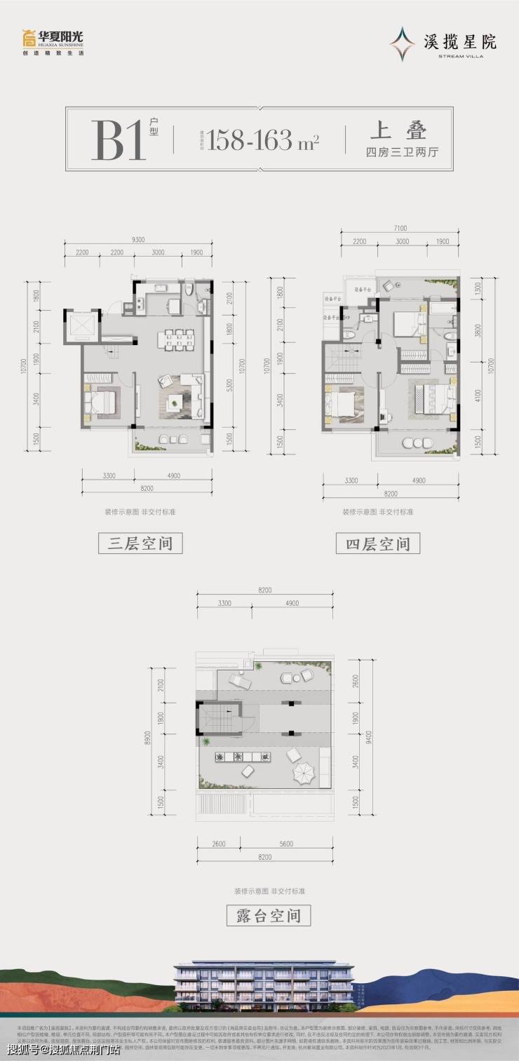 建面约163㎡上叠:顶层景观阳台/餐客一体连厅/套房式主卧/舒奢三卫设计