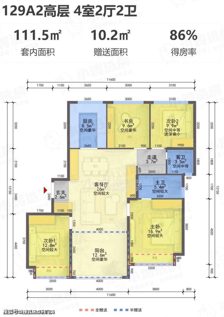 【得 房 率】:含赠送86-90%