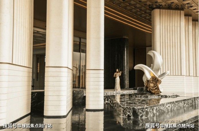社区的归家仪式感也直接拉满。宽约80米,高约8米的门头,香槟金铝板及200余颗星空灯勾勒出如银河般璀璨般的星空穹顶,搭配由整块汉白玉雕刻而成的“金玉流芳”石雕,一府风雅,自此缓缓铺陈。