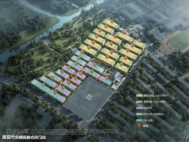 该项目定位为合院及叠墅社区,叠排主要是建筑面积约213-291方,合院主要是建筑面积约296-339方,建筑设计以新宋风为特色。