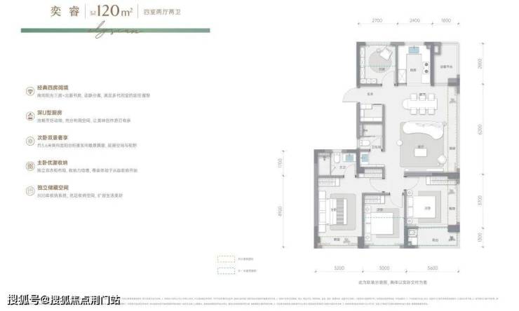 • 类方厅阔境:客厅餐厅厨房一体化设计,营造开阔通透的空间感,提升居住舒适度