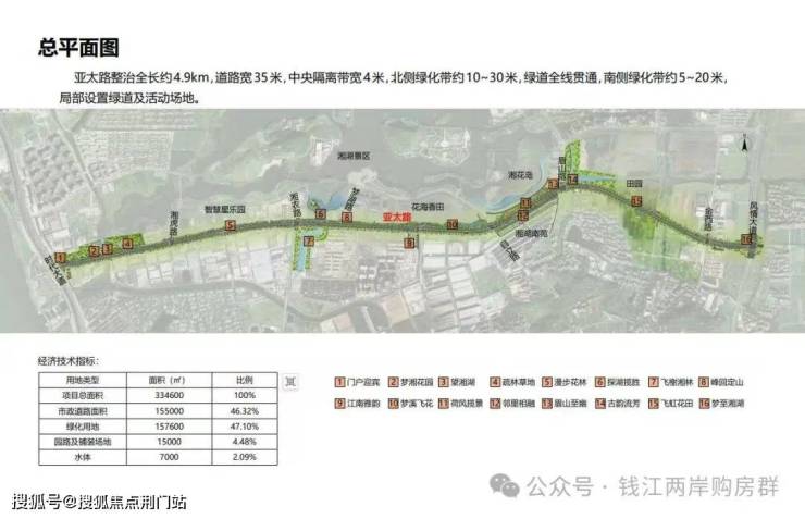 3)亚太路 杨公堤为对标,湘湖重点打造风景大道,一路尽享花海与繁华。