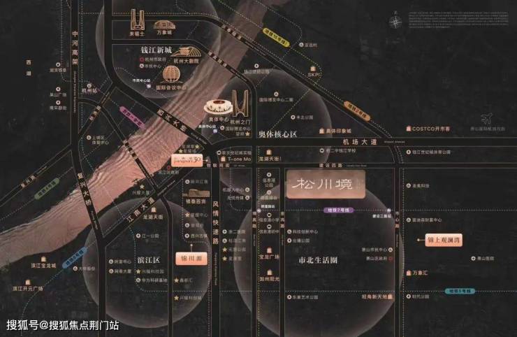 「松川境」位于建设四路(滨江产业动脉)和金鸡路(奥体顶豪基因)交汇处往东150米,处于奥体黄金十字轴之上。北接奥体,西连滨江,南邻萧山主城,周边汇集奥体印象城,奥体天街、万象汇等商业综合体,生活便利。