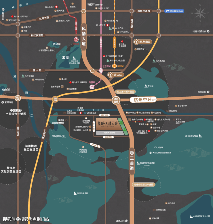不仅如此,在建的杭州中环也经过进化,这是一条免费的快速路网,从进化可以直达未来科技城等地。蓝城·天越云境到看似遥远的第三中心,未来也非常方便。