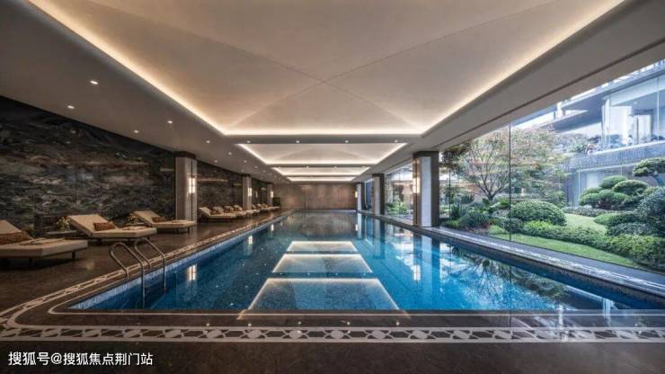 从恒温泳池的落地窗往外看这些树,就像是一个个精致的“巨型盆栽”。