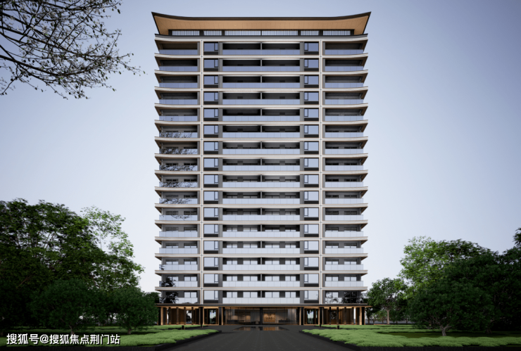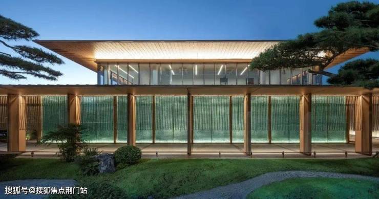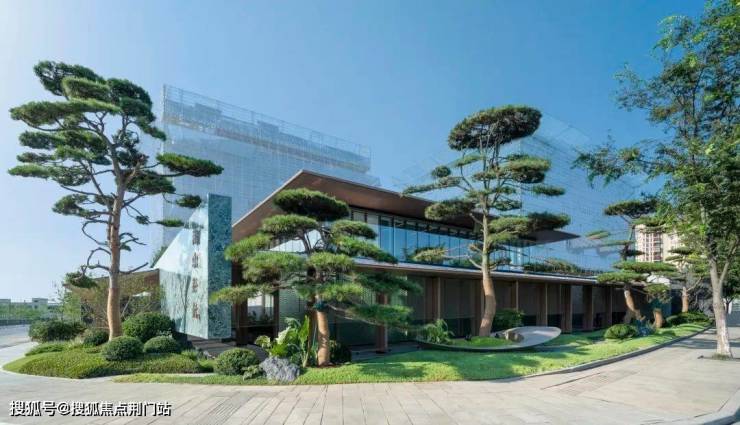 建筑采用了恢弘大气的宽屏镜幕立面,精心勾勒了香槟金铝板线条,轻盈灵动,搭配屋顶的瘦金体飞檐,高级感满满。