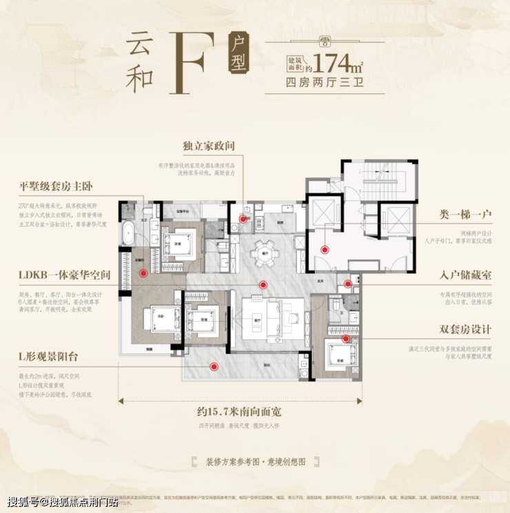 精装方面,中央空调、地暖、新风三大件齐全,此外还有岩板背景墙、厨房博世「油烟机、燃气灶」、方太「洗碗机、蒸烤一体机」,主卫智能马桶、魔法收纳系统等等,这样高的规格,在板块内不曾有过。