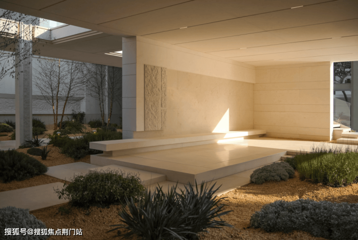 它将行政酒廊与砾石花园自然衔接,又以无边观景平台延展至下层会客空间,营造出纯净而优雅的高差漫游体验,让行进的每一步皆成风景的延续。