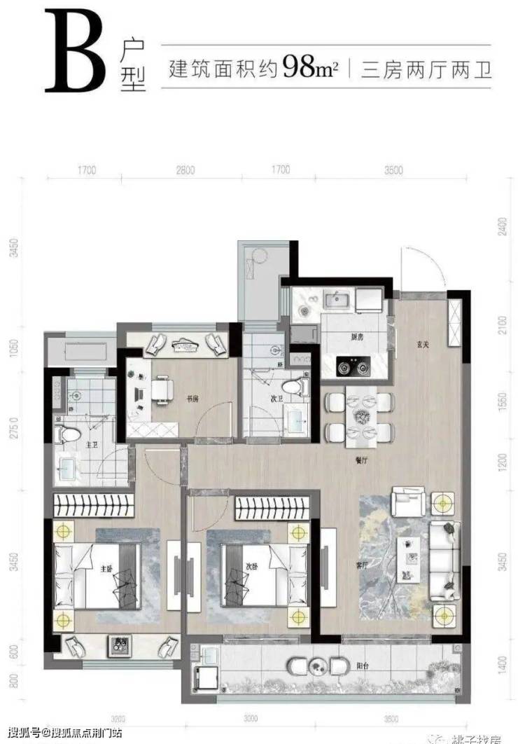 📐户型:三房88/98平,四房120/128平