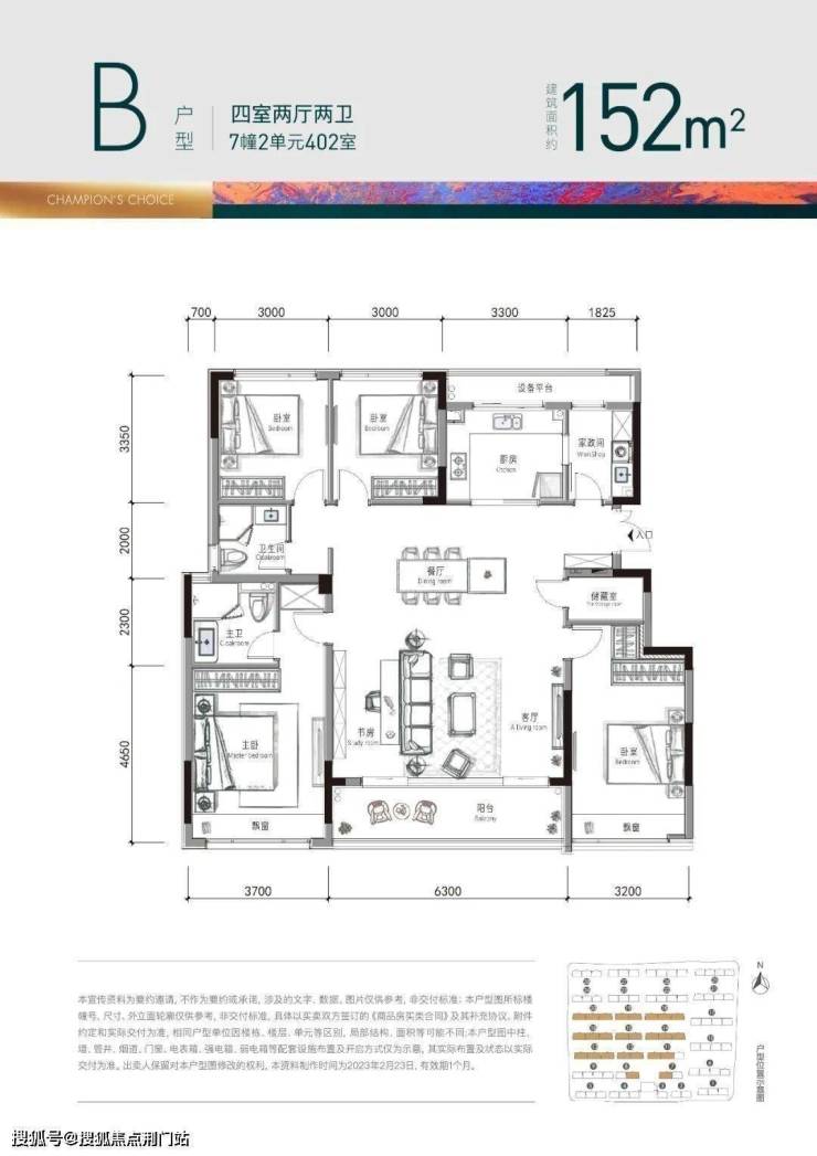 预算稍微多加一点点,只要约300万,就能直接买到云珹府的约152㎡户型,一步到位。