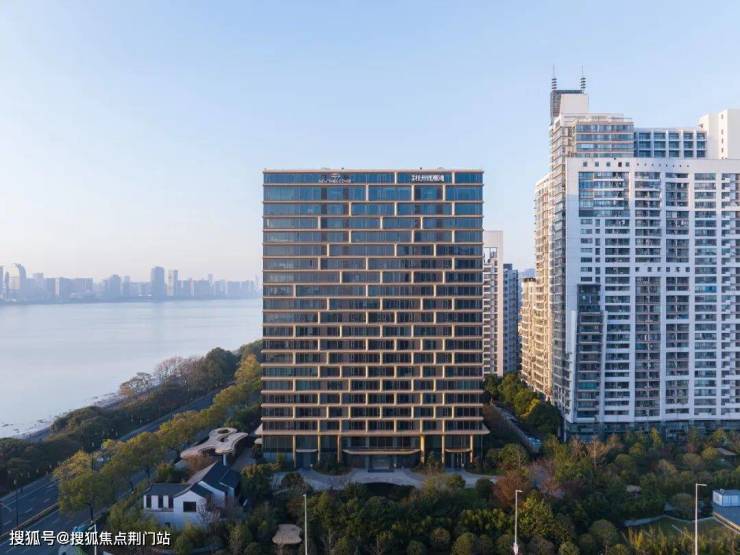设计提取钱塘江水“潮涌”的动态元素,抽象为独特精美的金色铝板曲面线条,结合大面积的玻璃,勾勒建筑体量的层间关系,交织出极富韵律的纵向线条,以潮水般流动变化的独特气质屹立江岸,又融入钱塘潮水流淌奔涌的历史之中。