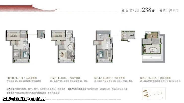 上叠拥有 南北双露台,屋顶还有个超大露台可观星揽月,三房朝南、双联大阳台,主卧走入式衣柜、双台盆、双卫浴。