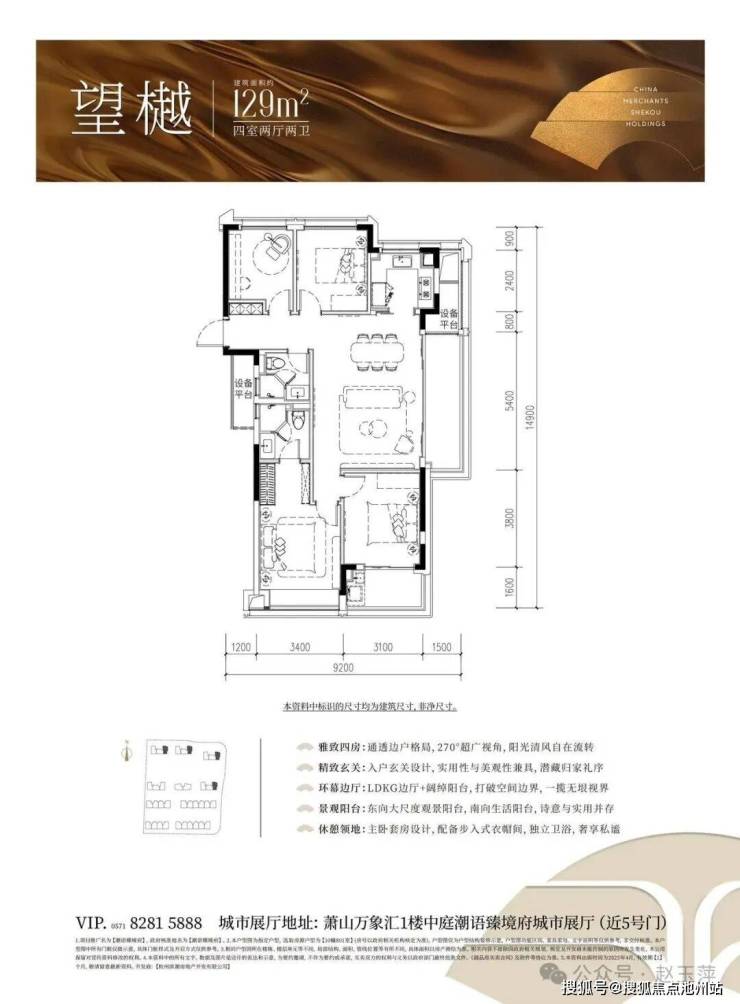 约129㎡臻樾 四室两厅两卫杭州招商潮语臻境府欢迎拨打售楼处电话:400-018-7969转444(有专业顾问为您一对一讲解)