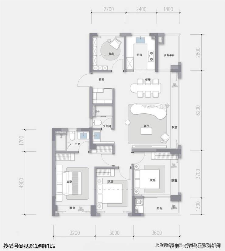 百变X空间:可打造超大面宽客餐厅+大三房