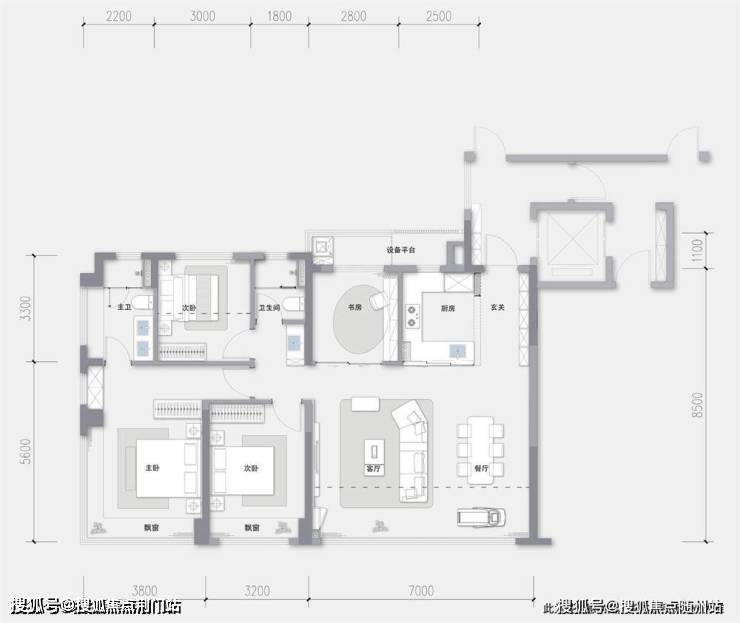 餐客一体宽境:约7米阔绰开间,奢宅排场