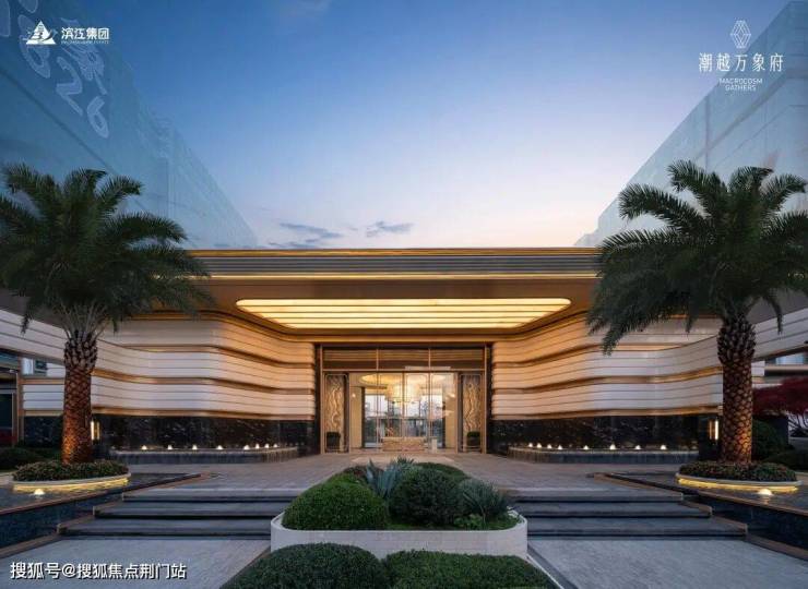 潮越万象府请了gad蒋愈、OGA邓代明、朴悦郭子伟三位大师,在示范区里下了血本。约37米进深的归家门头,灵感源自迪拜卓美亚港湾酒店,六棵变异银海枣价值超百万,头顶的“金顶官檐”与萧山开元大酒店遥相呼应。