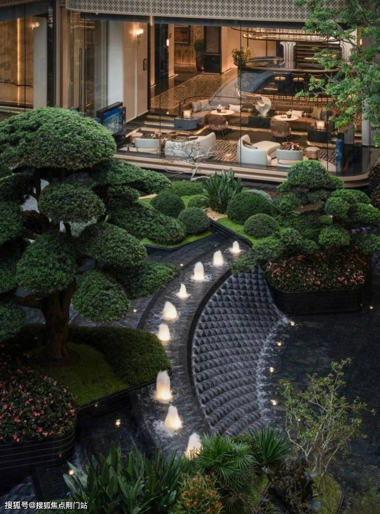 下沉式庭院,对标京都安缦的打造理念,将园林景观与室内空间呼应,形成隐于林间的奢华度假感。