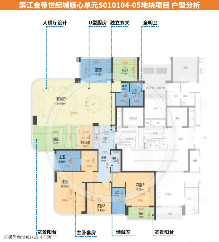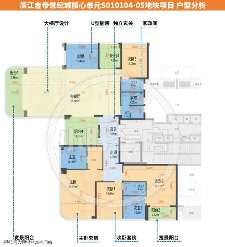 1、建面约238方:客餐厅大约55个平方,两梯两户,每户的客餐厅阳台都“挂出去”,视野会很棒,有独立的家政空间和公卫,就是南次卧11.4平方不算大,上厕所得穿过走道-玄关-客餐厅-家政空间才能到公卫……