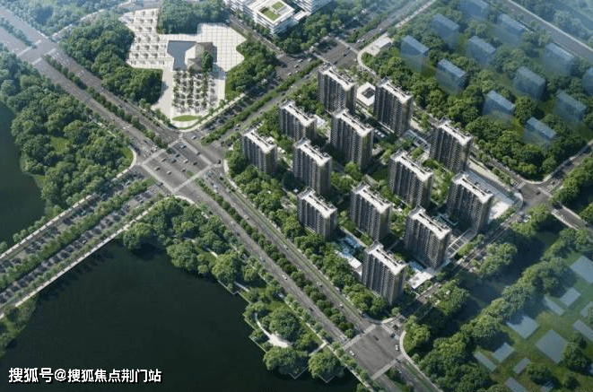从鸟瞰图上可以发现湖与舍东侧也有一条水系汇入东沙湖,让地块仿佛就像一个浮岛。