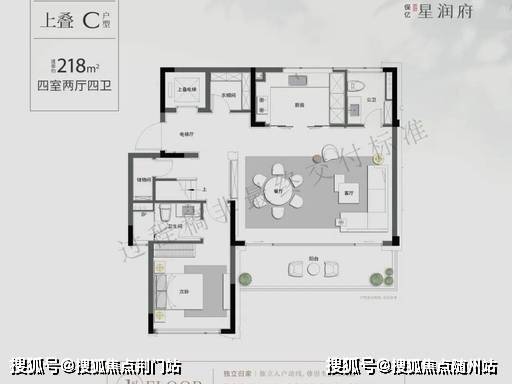 4 房 2 厅 3 卫,屋顶约 70㎡超大露台(电梯直达)