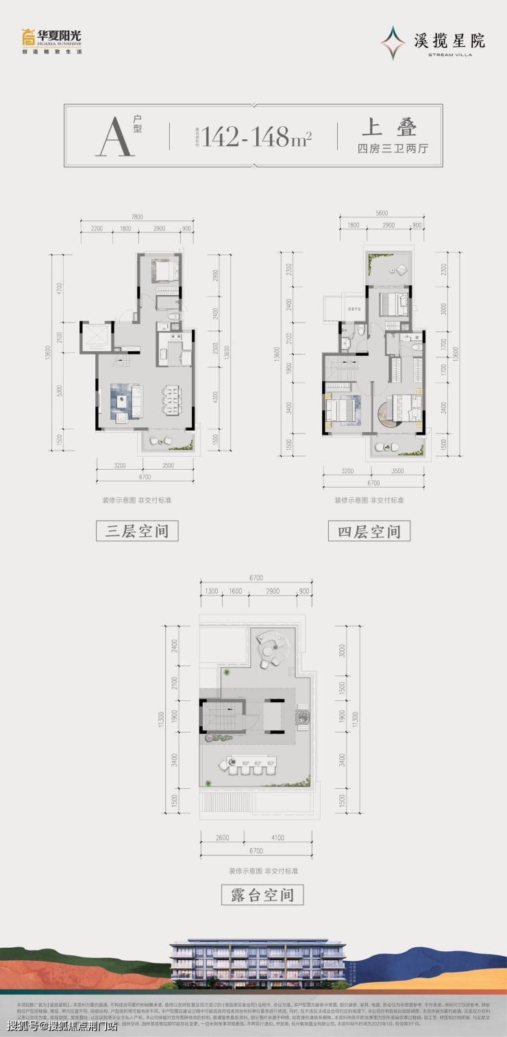 建面约149㎡上叠:约6.7m餐客连厅/豪华主卧套房/顶层景观阳台/U型厨房