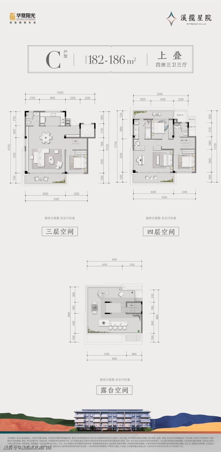 建面约187㎡上叠:约6m顶层观景阳台/餐客厅、书房开放设计/套房式主卧