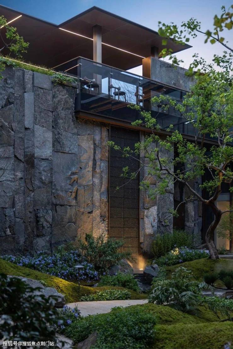 这个庭院美到霸屏,里面点缀着特选黑松、羽毛枫、4棵乌桕等,以及采用约40吨自然石皮面打造的垂直立面墙,整个庭院犹如立体山水画卷,每一个角度都有不一样的风景。