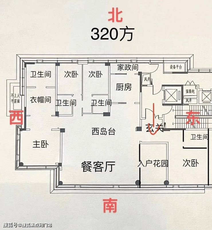梯户比:三梯两户