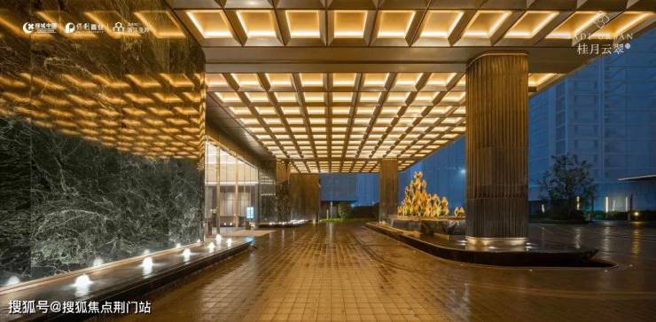 高定归家:约50m的“翡月之门”,是绿城保利交控·桂月云翠带给人的最初印象。流金穹顶与皇家金檀大理石构画的背景前,一方环岛车行落客区,令五星级酒店式归家成为现实。“明月松间照,清泉石上流。”王维独到的山水观,在下沉式庭院“空翠砯崖”上演。
