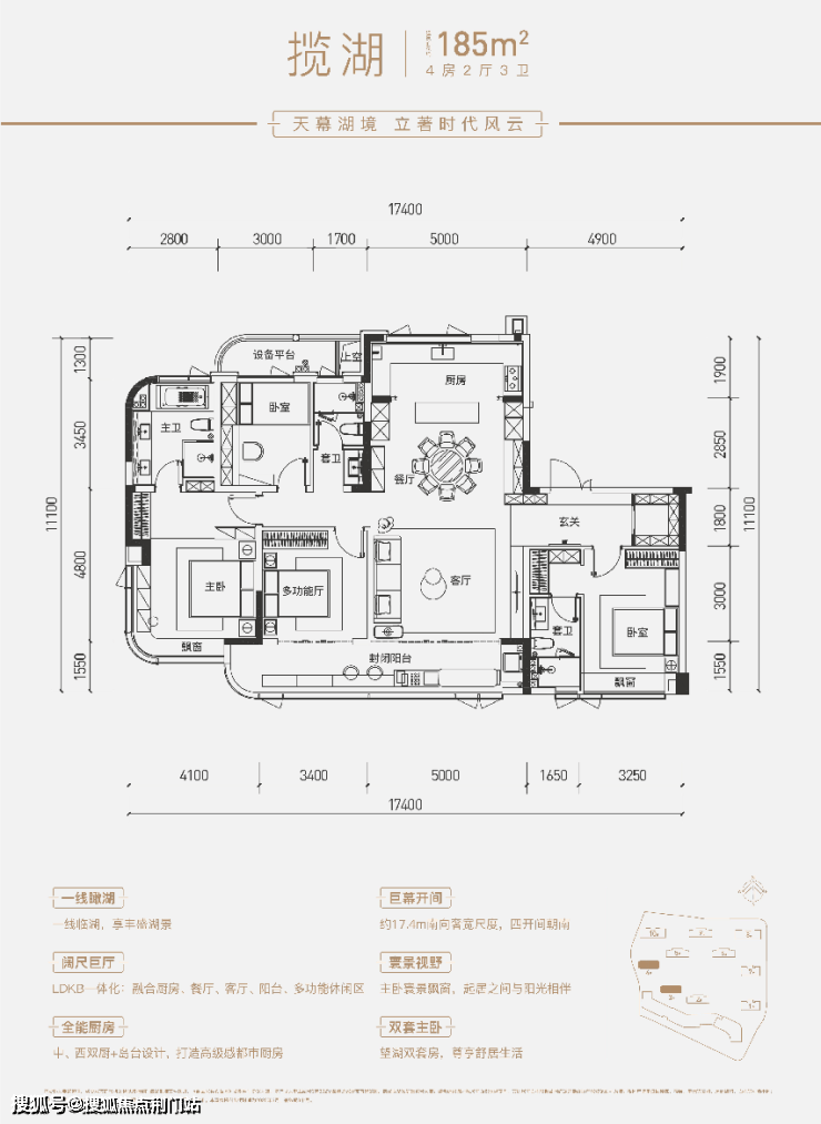 其中景观比较好的湖景头排是185方,未来在家中可观赏音乐喷泉。