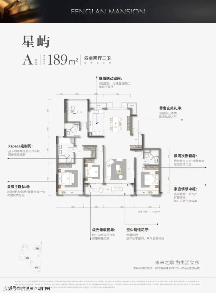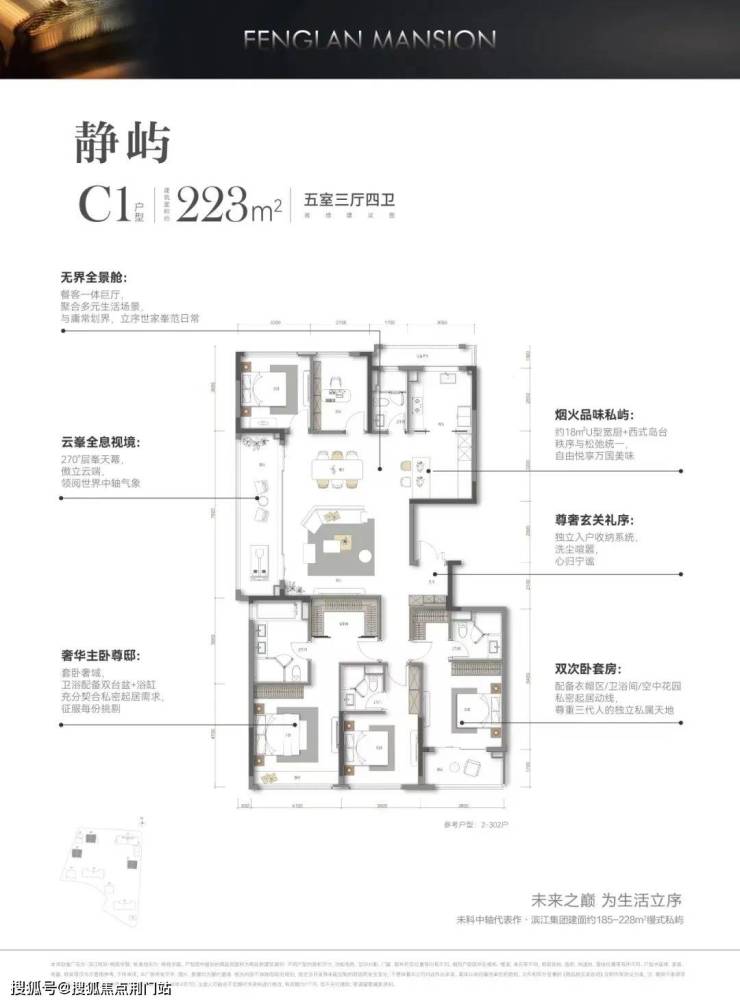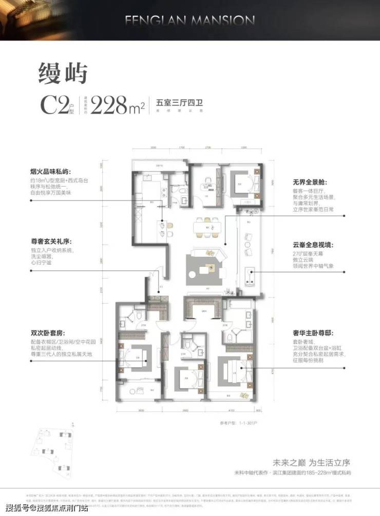 枫揽华庭也是,约185-228方的纯粹大户型设计,其中185-189方是大四房,建面约223、228方是五房: