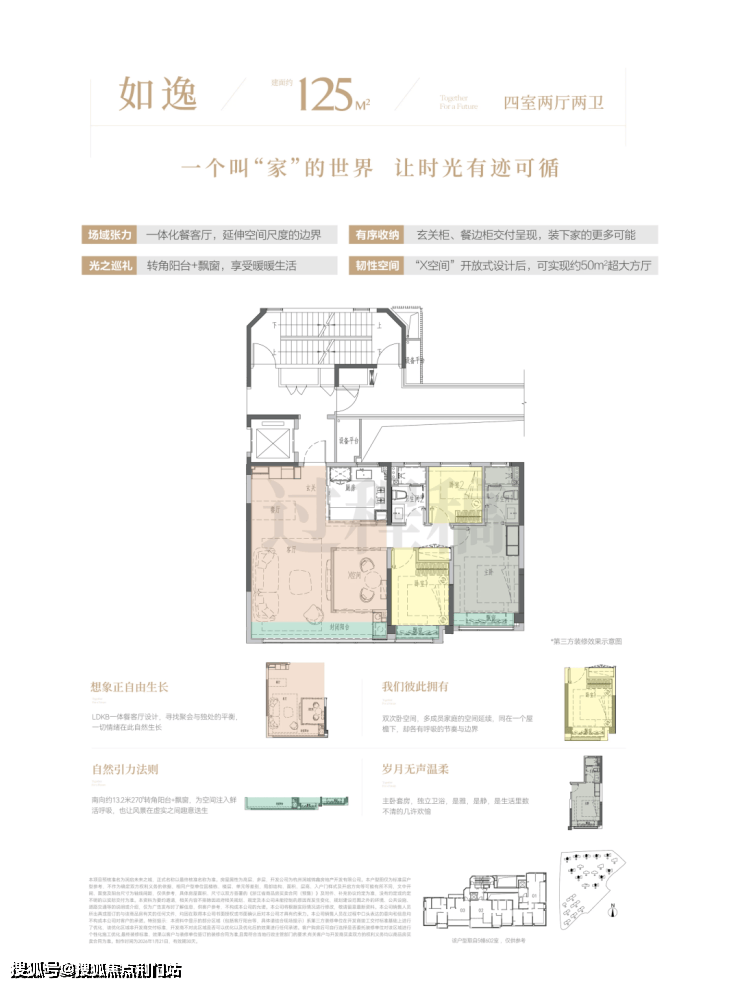 3.独立电梯厅+玄关+家政间+储物间+南向生活阳台+三卫配置,功能无死角