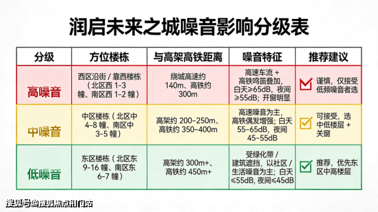 根据楼幢距离模型测算,我也大致整理了一份噪音影响的选房攻略,仅供参考,当然这个只是理论值。