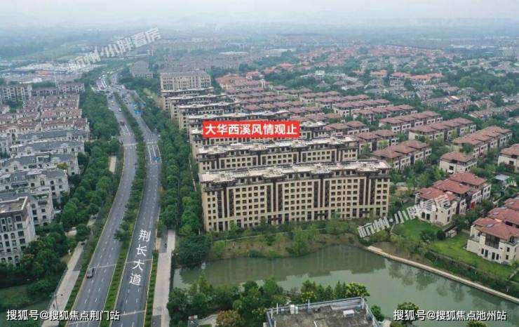 即将开盘的大华西溪风情观止洋房组团,位于小区的东面荆常大道一侧,一共有7幢,楼层有7-8层,现场航拍如下: