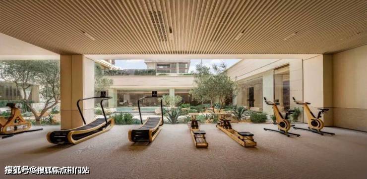 比如健身房,不止用了全进口的器材,它的颜色也是挑选过,不是冷冰冰的黑色,而是温暖明亮的原木色;