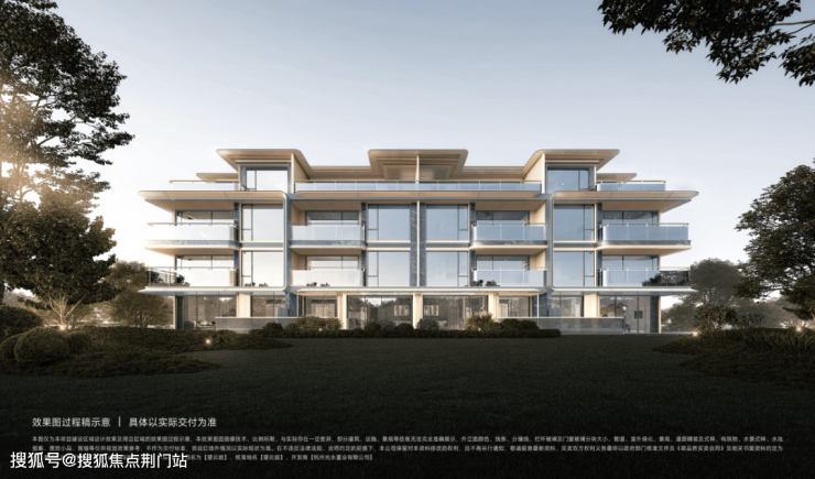 在用料和用材上,紧随国内流行奢宅样式,采用了“四面铝板+超大白玻”幕墙,不仅保证了外立面的磅礴大气,还兼顾室内瞰景视野的通透。