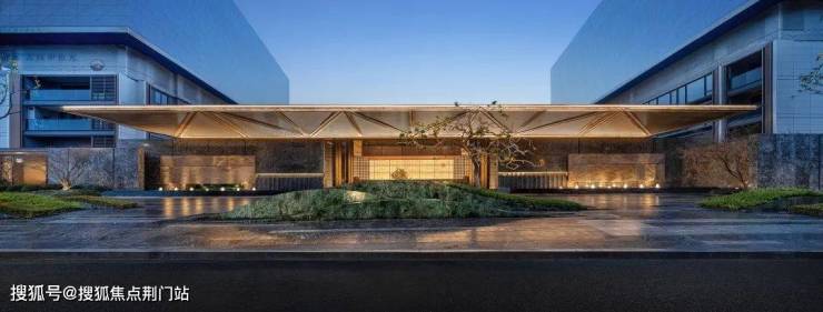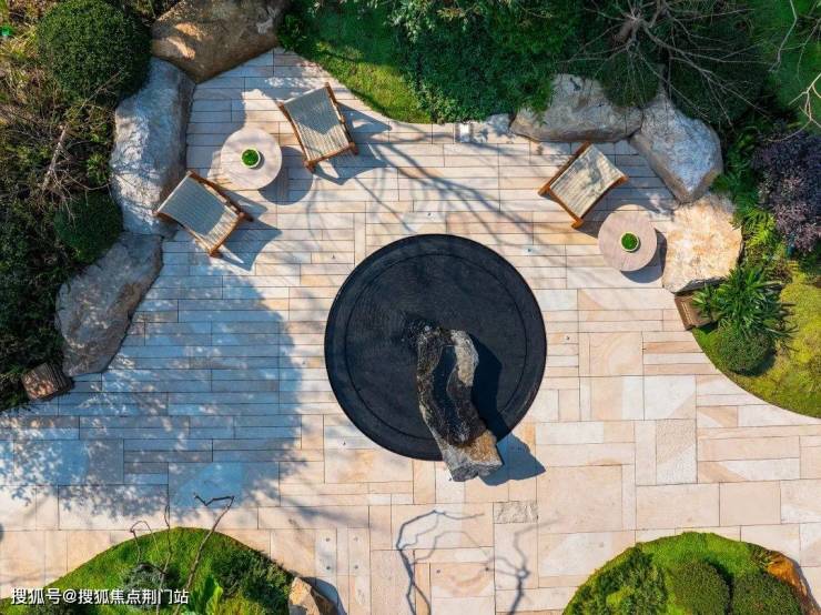 你看,在前场,项目用宝格丽绿奢石打造成一座山丘,再种上铁冬青,叠加潺潺流水,好一幅的微缩山水画卷,不仅寓意富贵满堂,洪福绵延,同时,将江南意境向城市开放。