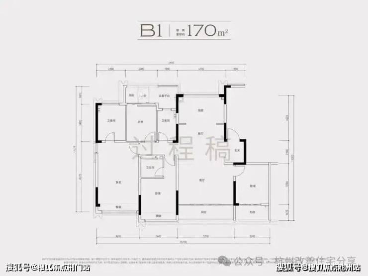 建面约170方B1户型,四房两厅三卫