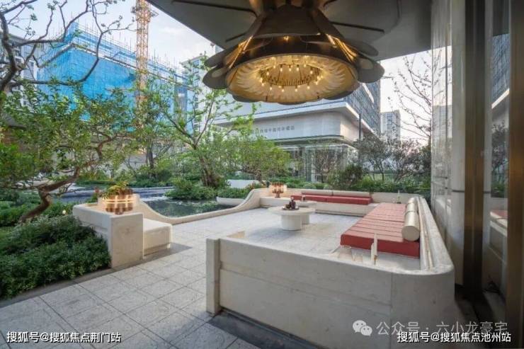②丰富的公区配置:下沉庭院、室内恒温泳池与嬉水池(两者通过可开合玻璃立面产生互动)、中轴水景花园会所、空中观景健身盒子。