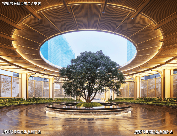 园林景观:利用6米高差打造下沉庭院,中心布局镜面水景与百年古桂,结合景观泳池、夜光跑道,构建层次丰富的休闲空间。