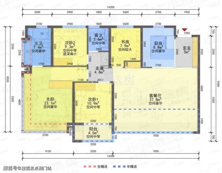 2)四开间朝南,双套房设计,主卧空间再升级