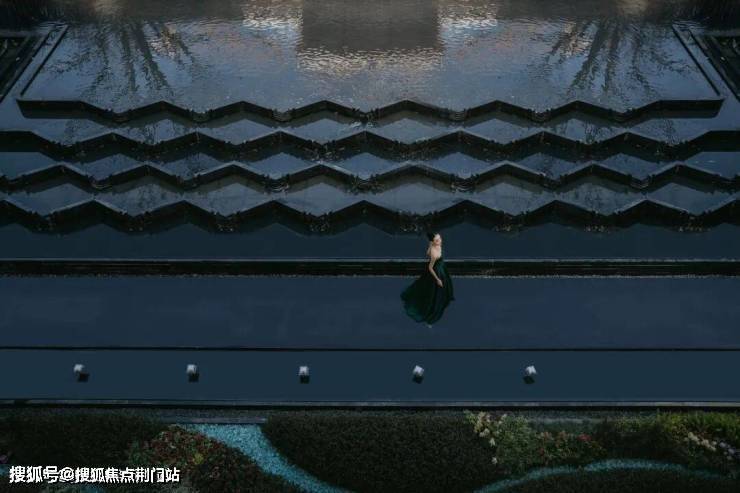 再看约1200方下沉庭院,叠水成瀑,区别于市面上大部分楼盘的“坑洞感”,形成上下两个平行空间的双层滨水度假系统,一看就很赞。