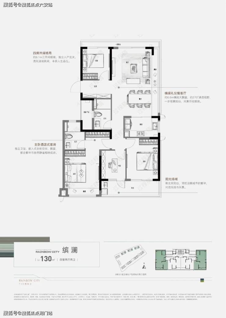 而建面约130㎡户型,在纯边套、约270°环景视野的基础上,餐客厅配以约6.6m横阔大飘窗、一步朗阔阳台,瞰景收心,释放恬淡自在的情绪。约9.1m三开间朝南,约5.6m双联阳台,无限扩展生活意境,园林芳华尽现眼前。一方阳台亦可作为私人天地,一台跑步机或瑜伽垫,即刻打造一个健身房;一副休闲桌椅,亦可感受生活的自如惬意。