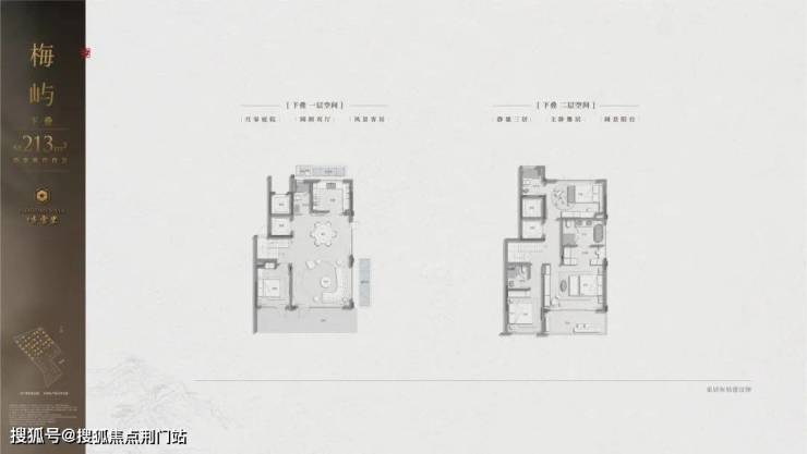 最迷人的要属建面约339㎡西边套,每一层皆有L型环绕式檐廊、阳台或露台,一层一天地;主卧更独占三楼,躺在大床上,就可以看到漫山梅花。