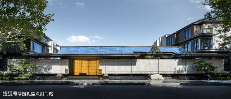 从远处望去,国宝级「曜变天目蓝」奢制大门气派非凡,为业主带来无比尊崇的“仪式感”。威仪的三重歇山顶式大屋檐、宋式瘦金体立面肌理以及东方精工技艺,足以撑起临平世代家族的门楣。