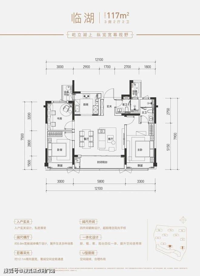 譬如,建面约115方三房两厅两卫,以三开间朝南搭配LDKB一体化阔厅,通过约27方餐客厅与观景阳台无缝串联,尺度彰显气势之外,与公区融合后,衍生出更多社交价值。