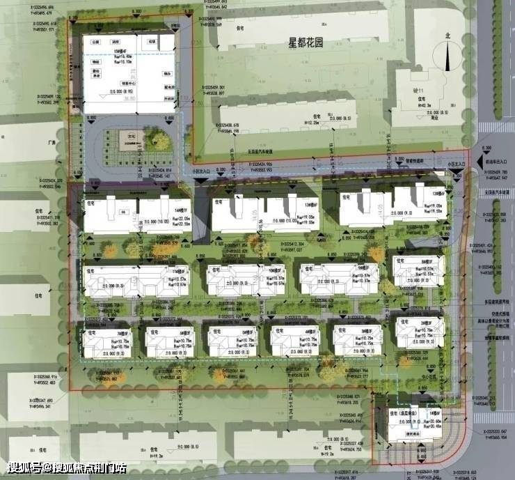 地块规划10幢3F排屋、4幢6-7F洋房共计14幢住宅,地块西北角规划1幢4F邻里中心。